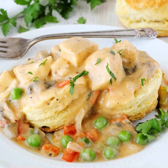 Chicken ala king is a timeless American dish that features tender chicken pieces in a rich, velvety cream sauce. The sauce is loaded with colorful vegetables like bell peppers, mushrooms, and peas. It’s traditionally served over rice, pasta, or inside puff pastry shells.